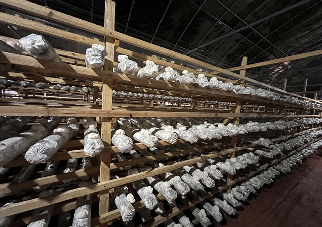 현대적인 액체 발효 기술의 버섯 균사체를 포함하여 다양한 시장을 만나기 위해 재배 된 실제 버섯의 과일 바디.